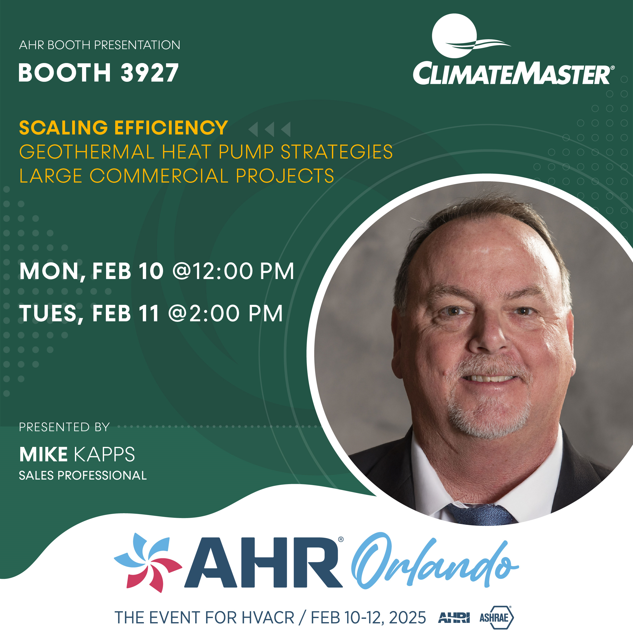 - Schedule and attend an individual meeting at our booth during the AHR Expo.